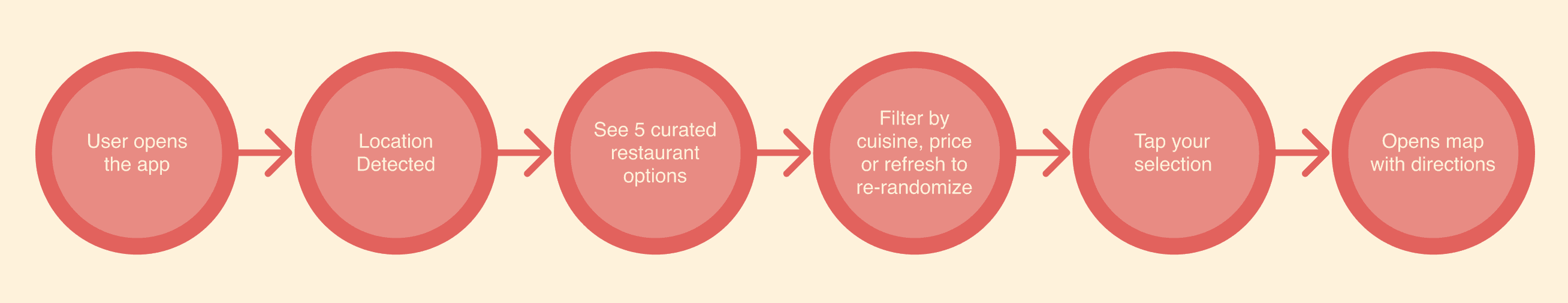 Open Spot → See 5 curated options → Filter by cuisine or refresh → Tap to get directions.