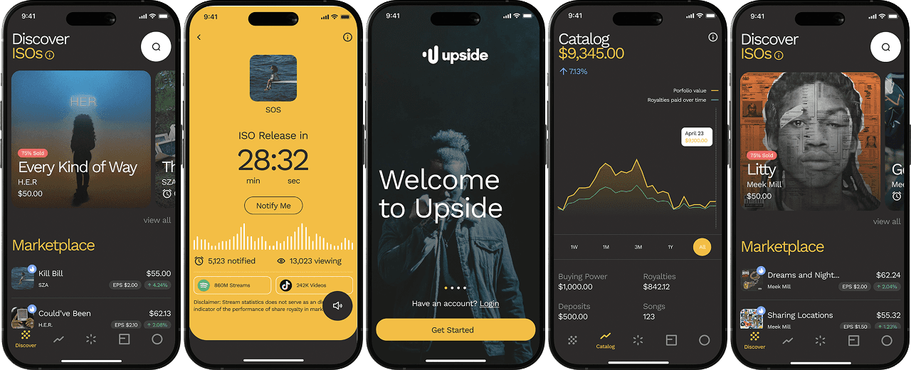 At NewCo: An IAC Incubator, I worked on Upside, a mobile-first fintech platform for investing in music royalties. I contributed to UI explorations, refined the login and signup flow, and helped establish a cohesive visual identity across the product and social channels, creating a seamless experience that turns fans into investors.